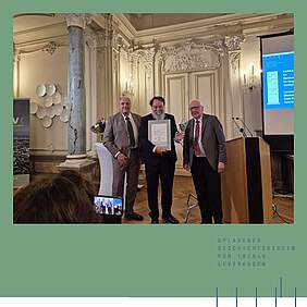Michael D. Gutbier M.A., 1. Vorsitzender des OGV und Ernst Küchler, Ehrenvorsitzender des OGV, hielten die Laudatio (hier der Text der Laudatio von Gutbier) und überreichten die Preisstele und die Ehrenurkunden.