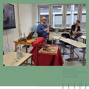 Am Lise-Meitner-Gymnasium in Leverkusen wurde das internationale Bildungsprojekt LIVING MEMORIALS vorgestellt. Initiiert wurde die Veranstaltung von Christian Drach, Geschichtslehrer am Gymnasium und zugleich Geschichtswart des Opladener Geschichtsvereins von 1979 e.V. Leverkusen (OGV). Als Referenten begrüßte die Schule André Bossuroy (Foto links), Koordinator des Projekts, sowie Roman Kroke (rechts), pädagogischer Leiter. Die Veranstaltung machte deutlich: Erinnerungskultur ist nicht nur Rückblick – sie ist ein zentraler Baustein aktiver Demokratiebildung.