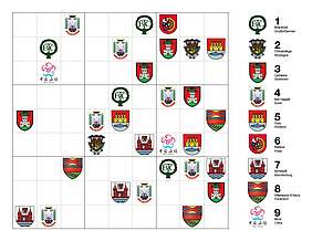 „Füllen Sie die leeren Felder so aus, dass in jeder Zeile, in jeder Spalte und in jedem der 3X3-Kästchen alle neun Wappen der Leverkusener Partnerstädte nur einmal vorkommen“.