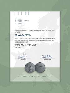 Der Bruno-Wiefel-Preis 2025 für städtepartnerschaftliches und europäisches Engagement wurde am 31. Oktober 2025 verliehen an